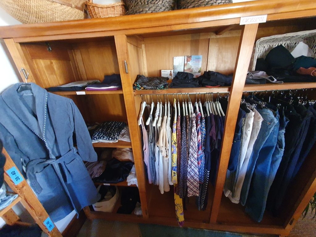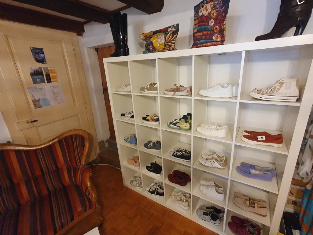 Apportons nos habits ou souliers usagés directement en Suisse dans des magasins de 2ème main comme L’échoppe, des organismes tels que Regenove, Emmaüs, Caritas ou les magasins qui fonctionnent en dépôt-vente, comme par exemple Chic-Troc à Courtelary pour les adultes ou Aux P’tites Pépites à St-Imier pour les enfants.