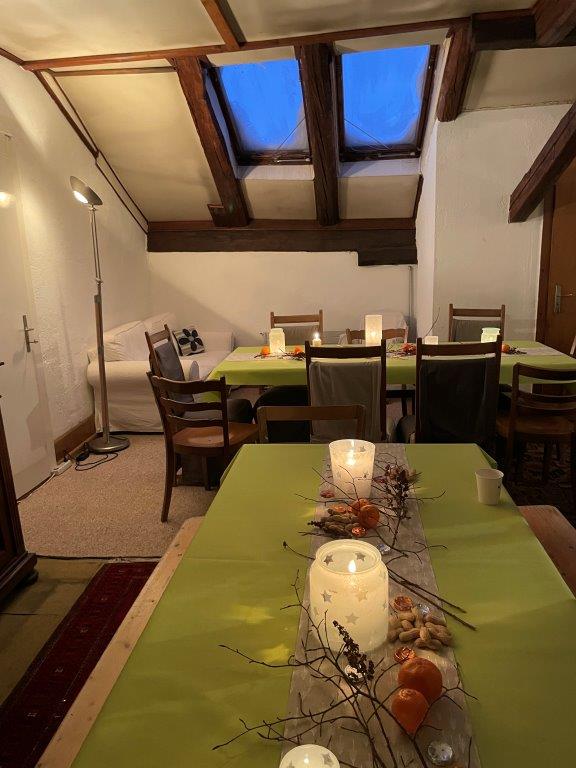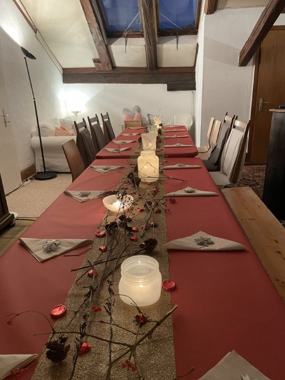 Places assises pour 20 personnes. Cuisine, vaisselle et toilettes à disposition. Prix de location : 80.- (à discuter). Appelez Noëlle au 079 214 59 46 pour en parler.